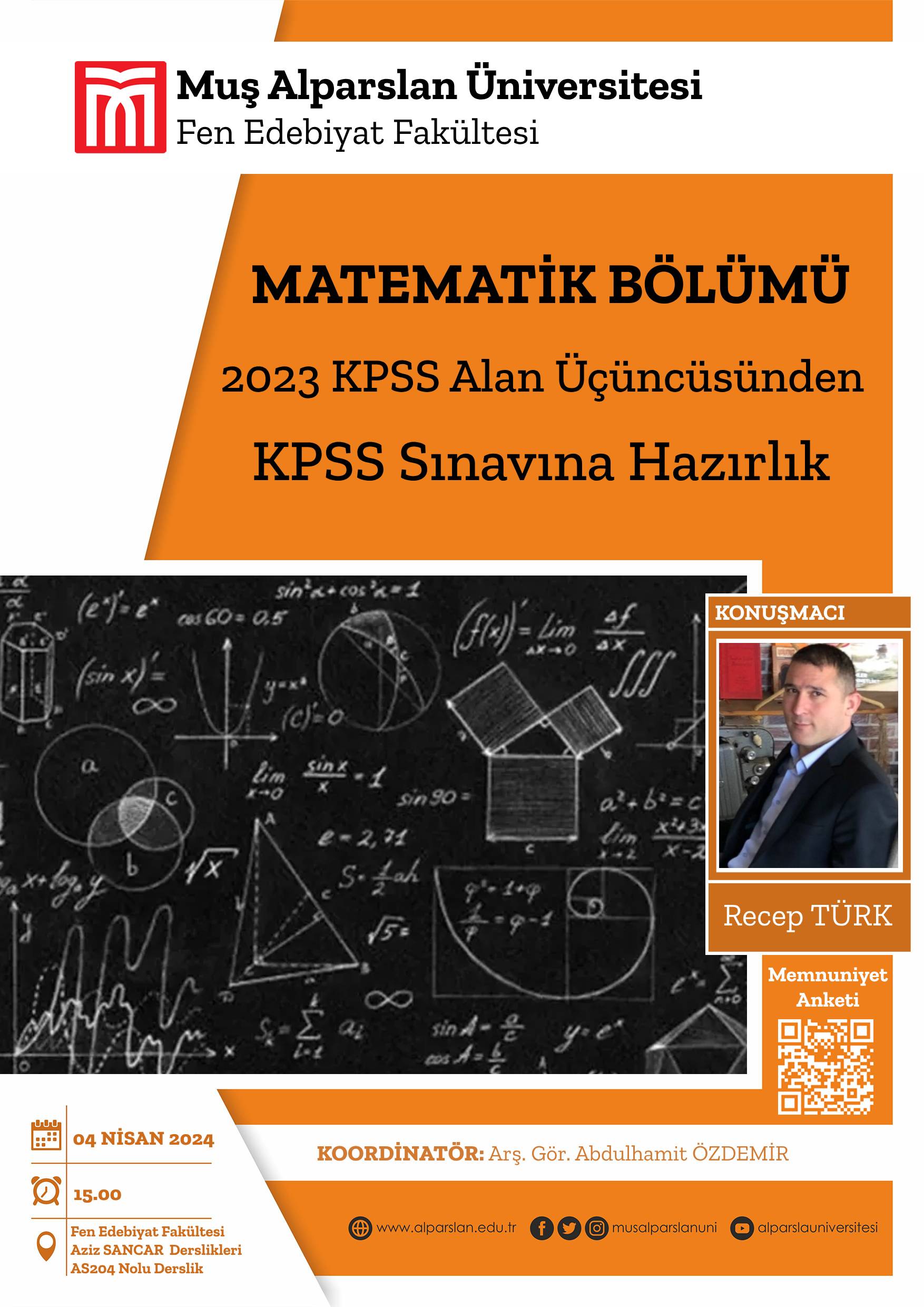 Üniversite Doktora öğrencilerimizden Recep TÜRK, 2023 KPSS Alan sınavına hazırlık sürecindeki tecrübelerini bölüm öğrencilerimizle paylaştı. Toplantı 04.04.2024 Perşembe günü saat 15:00'da Aziz SANCAR Derslikleri AS204 nolu dersliğinde gerçekleştirildi.
